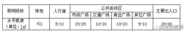廣場(chǎng)綠地、人行道、公告活動(dòng)區(qū)等照度標(biāo)準(zhǔn)值