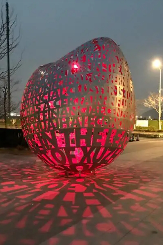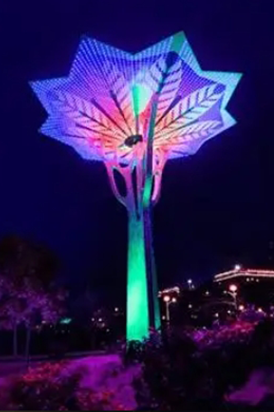 燈光雕塑小品作為藝術品,本身就具有審美價值,由于其造型、色彩、尺度再加上合理布局,本身就是城市公共空間、景區園林一景。運用雕塑小品的裝飾性能夠提高所在地點觀賞價值,滿足人們的審美要求,給人以藝術的享受和美感。